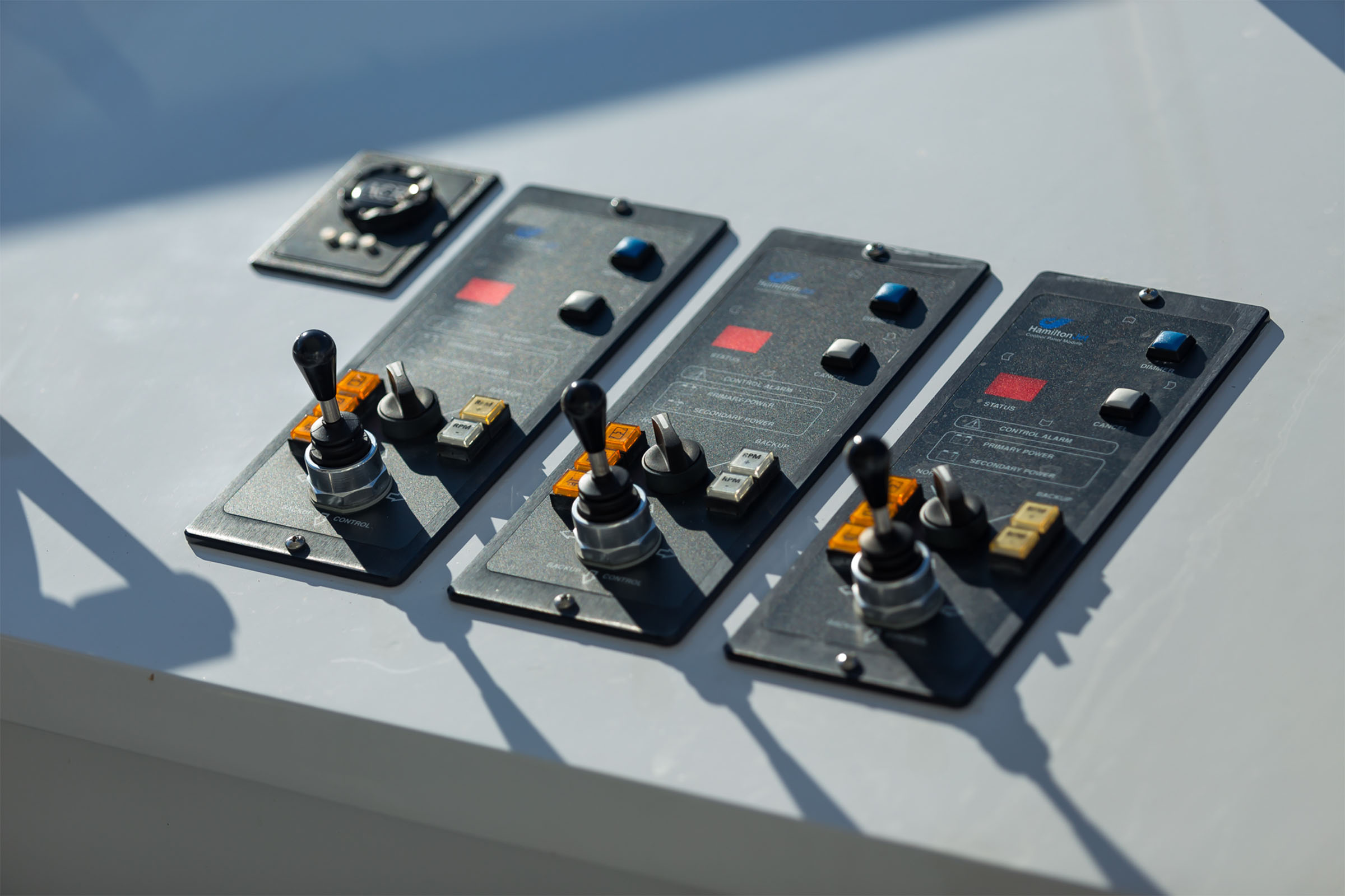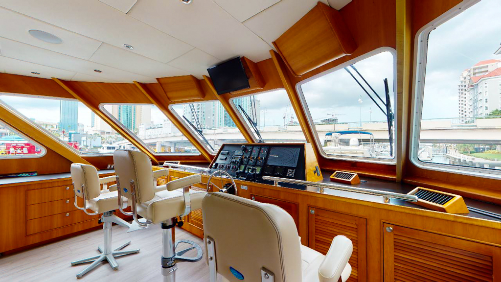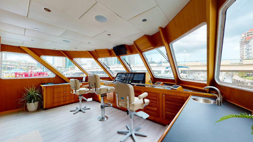 This exceedingly well built motor yacht blends form and function in a way that makes her ideal for Bahamas cruising and other island hopping. Her shallow 2′ 6″ draft and Hamilton waterjet drives make operating across the Bahama Bank a breeze, while at the same time affording comfortable access to the many interesting harbors and anchorages often denied to deeper draft vessels.